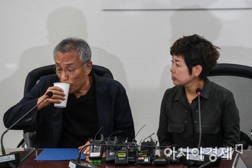[아시아경제 강진형 기자]소설가 황석영과 방송인 김미화가 25일 오전 서울 종로구 광화문KT에서 문화계 블랙리스트 공개 입장 발표를 하고 있다.강진형 기자 aymsdream@asiae.co.kr<ⓒ세계를 보는 창 경제를 보는 눈, 아시아경제(www.asiae.co.kr) 무단전재 배포금지>