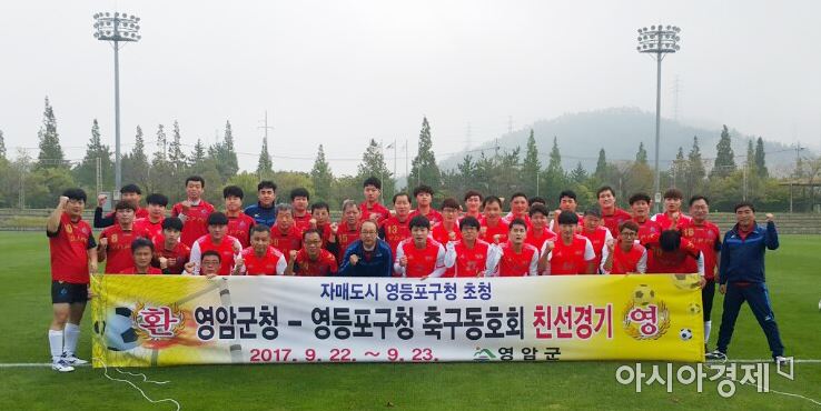 [아시아경제 노해섭 기자]영암군은 지난 22일부터 23일까지 2일간 자매도시인 서울 영등포구 축구동호회를 초청하여, 도농 상생협력을 다짐하는 친선경기를 영암군 삼호 천연잔디구장에서 개최했다. 영암군은 서울 영등포구와 2008년 이후 지속적으로 직원 상호간에 우의를 다지고, 나아가 자치단체 간 상생 협력관계를 도모하고자 매년 스포츠교류를 추진하고 있으며, 특히 추석 명절을 앞두고 개최된 이번 행사는 지역 간 승패를 떠나 참가자 모두의 승리라는 훈훈한 정을 나누고 1년 후를 기약하는 시간도 함께 가졌다. 영암군 관계자는 “앞으로도 민·관의 다양하고 활발한 교류를 추진하여 도농 상생협력관계를 구축하고, 타 시·군에 화합과 우호협력의 좋은 모델이 될 수 있도록 더욱 노력해 나가겠다”고 밝혔다. 영암군은 서울 영등포구와 1995년 자매결연을 맺은 이후, 스포츠 교류 이외에도 농특산물 특판행사, 각종 기념행사 및 축제 상호 방문, 그리고 어린이 문화체험 등 다양한 방면으로 교류의 폭을 확대하고 있다. 노해섭 기자 nogary@<ⓒ세계를 보는 창 경제를 보는 눈, 아시아경제(www.asiae.co.kr) 무단전재 배포금지>