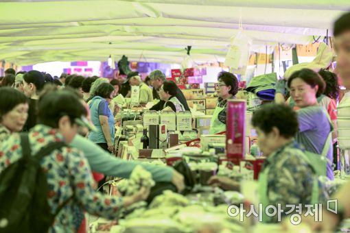 [아시아경제 강진형 기자]25일 오전 서울 중구 서울광장에서 열린 '추석 농수산물 서울장터'를 찾은 시민들이 농산물을 둘러보고 있다.강진형 기자 aymsdream@asiae.co.kr<ⓒ세계를 보는 창 경제를 보는 눈, 아시아경제(www.asiae.co.kr) 무단전재 배포금지>