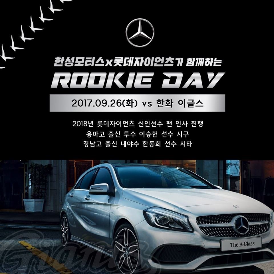 [아시아경제 박병희 기자] 프로야구 롯데 자이언츠가 26일 열리는 한화 이글스와 홈경기에 메르세데스-벤츠 공식딜러 한성모터스와 함께하는 루키데이를 진행한다.이날 2018 신인선수 열한 명은 지명 후 처음 사직야구장을 찾아 홈 관중에게 입단 인사를 하며 한성모터스에서 준비한 소정의 기념품을 전달받는다. 입단 행사가 끝나면 신인선수들은 가족들과 함께 관중석으로 이동해 경기를 관람한다.이날 경기의 시구와 시타도 신인 선수들이 맡는다. 1차 지명인 경남고 출신 내야수 한동희가 시타자로, 2차 1번 지명 용마고 출신 투수 이승헌이 시구자로 나선다. 또 경기 중 전광판을 통해 신인선수 열한 명의 소개와 입단 포부를 담은 영상을 상영한다.한성모터스는 메르세데스-벤츠 공식딜러로 2015년부터 롯데와 제휴를 맺고 '벤츠를 잡아라' 이벤트 등 다양한 마케팅 활동을 진행하고 있다.박병희 기자 nut@asiae.co.kr<ⓒ세계를 보는 창 경제를 보는 눈, 아시아경제(www.asiae.co.kr) 무단전재 배포금지>