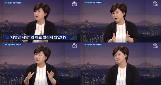 가수 고(故) 김광석의 아내 서해순 씨가 JTBC '뉴스룸'에 출연해 자신을 둘러싼 의혹들에 해명을 나섰지만 누리꾼들의 의혹은 더 가중되고 있어 논란이다.서해순 씨는 최근 이상호 고발뉴스 기자를 시작으로 김광석 유가족 측이 김광석과 딸 서연 양의 사망에 대해 재수사를 촉구하자 25일 방송된 JTBC '뉴스룸'에 출연해 손석희 앵커와 인터뷰에 나섰다.이날 인터뷰에서 나온 서해순씨를 둘러싼 의문점들은 故 김광석의 사망을 목격하고 50분이 지나서야 119에 신고를 한 것과 2007년 딸 서연 양의 죽음을 10년간 알리지 않은 점, 또 딸의 죽음을 친정에도 여러 달 동안 알리지 않은 점, 인접저작권 재판 결과가 나오기 전까지 딸의 사망신고를 미뤘다는 점 등이다.그러나 서해순 씨는 이 모든 질문에 "경황이 없었다"거나 “너무 바빴다”는 답변만을 내놔 논란은 더욱 가중되고 있다.또 딸의 죽음을 10년간 알리지 않은 이유를 묻는 질문에도 "애가 죽은 걸 알리는게 겁이 났다. 기회가 되면 알리려고 했다"며 "경황이 없고 힘들었다"고 밝히기도 했다.이후에도 과태료를 낼 때까지 딸의 사망신고를 하지 않았냐는 질문에는 "경황이 없었다. 10년 전 얘기다. 장애우를 키워보셨는지 모르겠지만 엄마의 마음은.."이라 말하며 말을 돌렸다. 이렇듯 반복되는 답변과 불안정한 모습 등은 누리꾼들의 의혹을 더욱 증폭시켰다. 애초 의혹을 풀기위해 나선 인터뷰가 의혹만 가중시킨 셈. 이에 대해 '뉴스룸' 말미 손 앵커는 "인터뷰가 끝나고도 많은 분들이 의구심을 가질 것 같다. 재반박을 하는 상황도 나올 수 있다"고 덧붙였다.인터뷰를 접한 누리꾼들은 대다수 불안하고 부자연스러운 모습과 과장된 액션과 앞뒤가 맞지 않는 진술 등이 의혹을 더욱 증폭시켰다는 반응들을 보였다.또 일각에서는 lmo2****“근데 전문가들은 서해순의 몸짓과 행동 표정을 보고 충분히 그의 정신상태를 알수 있지 않을까요? 인터뷰때보니 리액션이 과할만큼 지나치던데”, aum****“경황이 없다는말로 자신이 힘든거만 이야기 하지 남편의 죽음을 아무것도 모른다는 식”, dida****“담배얘기에 당황하는 모습” 등의 반응을 보이며 의심스러운 부분을 콕 집어 내기도 했으며 kind****“차마 하지 못 한 질문들 1. 현재 동거남이 김광석 친구 맞나? 2. 그 남자랑 김광석 사망 전 불륜관계 맞나? 3. 오빠는 전과 13개나 되는 강력범 맞나? 4. 김광석과 결혼 전 이미 결혼한 적이 있나? 5. 그때 낳은 아이를 죽였다는 게 맞나? 6. 이런 사실을 알게 된 김광석이 죽기 직전 무렵에 이혼 얘기를 꺼낸 거 맞나?” 등 또 다른 의혹점을 제기하기도 했다.한편 지난 21일 고영화 '김광석'을 만든 이상호 고발뉴스 기자는 서해순을 유기치사와 소송사기 등 혐의로 21일 검찰에 고발한바 있다. 서울중앙지검은 형사 6부(부장검사 박지영)에 해당 사건을 배당하고 수사주체를 서울지방경찰청 광역수사대로 결정했다.미디어이슈팀 기자 <ⓒ세계를 보는 창 경제를 보는 눈, 아시아경제(www.asiae.co.kr) 무단전재 배포금지>