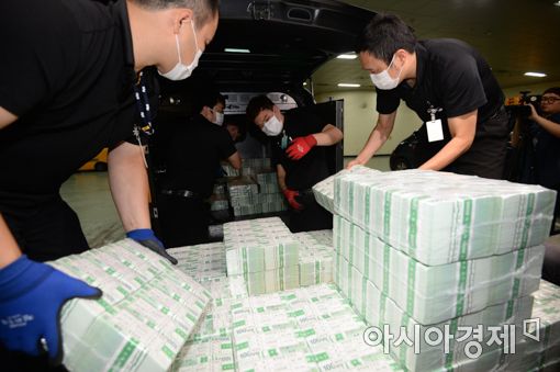 [아시아경제 강진형 기자]민족 대명절인 추석을 일주일여 앞둔 26일 오전 서울 한국은행 강남본부에서 2017년 추석자금이 공급되고 있다.강진형 기자 aymsdream@asiae.co.kr<ⓒ세계를 보는 창 경제를 보는 눈, 아시아경제(www.asiae.co.kr) 무단전재 배포금지>