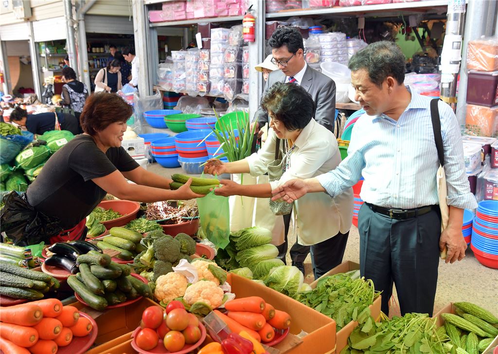 [아시아경제 노해섭 기자]윤장현 광주광역시장이 추석을 앞둔 26일 오전 광산구 비아시장을 찾아 제수용품과 생활용품을 구입하고 상인들을 격려했다./광주광역시 제공<ⓒ세계를 보는 창 경제를 보는 눈, 아시아경제(www.asiae.co.kr) 무단전재 배포금지>