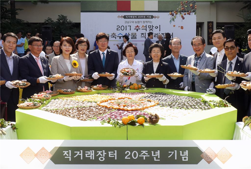 [아시아경제 박종일 기자] 강남구(구청장 신연희)는 26일 오전 11시 구청 주차장에서 ‘추석맞이 직거래 장터’를 열었다.특히 이날 ‘대한민국 8도 송편’을 만들어 눈길을 모았다. 추석맞이 직거래 장터에는 전국 팔도에서 엄선된 농·수·축산물이 판매되고, 먹거리장터 운영, 안전한 계란 반값 특판 등 다양한 부대행사가 열렸다.박종일 기자 dream@asiae.co.kr<ⓒ세계를 보는 창 경제를 보는 눈, 아시아경제(www.asiae.co.kr) 무단전재 배포금지>