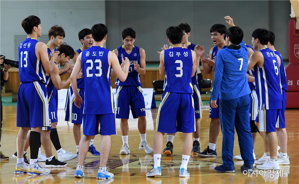 [아시아경제 김현민 기자]2017 대학 농구리그 챔피언결정전 1차전 고려대와 연세대의 경기가 26일 고려대 화정체육관에서 열렸다. 연세대 선수들이 83-57로 이긴 뒤 기쁨을 나누고 있다. 김현민 기자 kimhyun81@asiae.co.kr<ⓒ세계를 보는 창 경제를 보는 눈, 아시아경제(www.asiae.co.kr) 무단전재 배포금지>