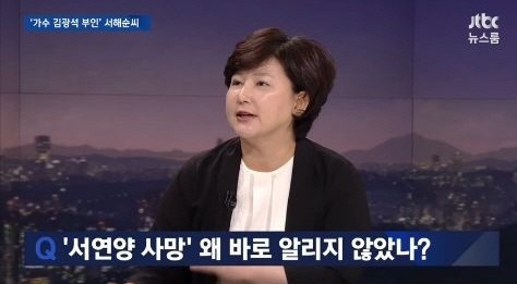 고 김광석씨의 부인 서해순 씨가 '뉴스룸'에서 인터뷰를 한 가운데 프로파일러 배상훈, 이수정 교수가 날카롭게 분석했다. 국내 1호 프로파일러 배상훈 서울디지털대 경찰학과장은 중앙일보와의 인터뷰에서 서해순 씨가 딸 서연양의 죽음을 숨긴 이유를 묻는 손석희 앵커의 질문을 받은 뒤, 의혹이 제기된 저작권 관련 대법원 소송이 아닌 별건의 손해배상 소송을 이야기 하다 손 앵커의 받은 것에 대해 "들통나니 계속 당황해서 말을 돌렸다. 이상하다는 것은 전문가가 아니라도 금방 알 수 있다"고 말했다. 또 배 학과장은 인터뷰 중간중간에 서 씨가 '경황이 없었다'고 한 점, 손 앵커의 얼굴을 똑바로 보지 못하고 회피하는 듯한 시선에 대해 "본인이 불리하다고 생각할 때 나오는 행동"이라고 평했다. 과도한 눈 깜빡임에 대해서는 "방송국 조명일 수도 있고 생방송으로 인해 긴장한 상태에서 나올 수도 있는 행동"이라고 설명했다. 이외에도 자신의 딸을 제 3자처럼 이름을 부른데서는 "통상 자신의 딸을 지칭할 때 우리 서연이, 제 딸아이 이렇게 표현해야 하는데 서 씨의 경우 인칭이 바뀌었다. 마치 제 3자처럼 이야기했다. 일반적인 엄마라면 그렇게 부르지 않는다"고 말했다.[사진제공=뉴스룸]