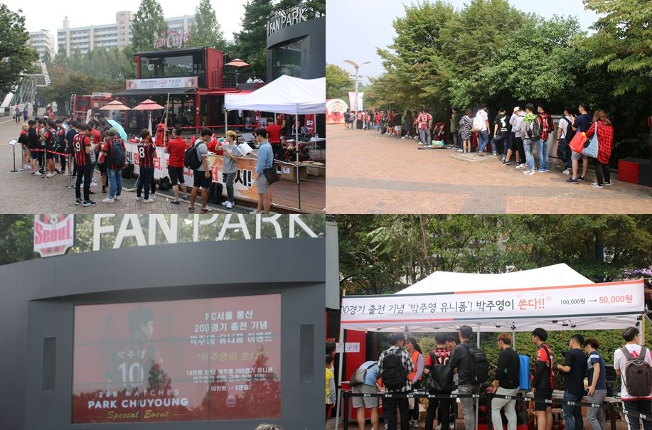 [아시아경제 김형민 기자] 프로축구 FC서울이 박주영과 함께 기획한 ‘박주영 서울 통산 공식 200경기 출전 기념 유니폼 이벤트’가 마무리됐다. 24일 판매된 현장판매분과 26일 진행된 온라인 판매분까지 총 200벌이 단번에 완판됐다.이번 행사는 지난 17일 열린 인천 유나이티드와의 경기를 통해 서울 통산 공식 200경기(아시아 챔피언스리그, K리그, FA컵) 출전이라는 대기록을 달성한 박주영이 직접 아이디어를 내며 준비됐다. 박주영이 팬 선착순 200명에게 유니폼 가격의 50% 금액을 지원하겠다는 의사를 밝히며 팬들은 박주영의 이름과 등 번호가 마킹된 유니폼을 대폭 할인된 가격인 5만 에 구매할 수 있게 됐다. 이 유니폼에는 박주영의 서울 통산 공식200경기를 기념하는 특별 자수도 새겨지며 판매 전부터 많은 서울 팬들의 관심이 모였다.지난 24일 진행된 서울 홈 경기의 킥오프 시간은 오후 3시 10분이었지만 서울 공식 용품샵 ‘FC서울 팬파크’에는 아침 8시부터 팬들이 몰려들었다. ‘박주영 200경기 유니폼 이벤트’가 그 이유였다. 서울은 홈경기 오프라인 판매에 150벌, 온라인 판매에 50벌을 준비했다. 현장 판매의 시작은 12시였지만 수많은 서울 팬들이 이른 아침부터 줄을 서며 기다리기 시작했다. 11시가 되자 100여명에 이르는 사람들이 팬파크 앞에 운집하며 박주영의 인기를 실감케 했다. 결국 팬들의 뜨거운 반응에 힘입어 현장 판매로 준비했던 모든 수량이 서울 팬파크 오픈과 함께 조기 완판됐다. 이날 ‘박주영 200경기 유니폼 이벤트’ 1호 구매자인 유경배(19)군은 “이벤트 유니폼 구매를 위해 아침 8시부터 줄을 섰다” 면서, “박주영이 서울에 입단한 2005년부터 서울 팬이 됐다. 서울 선수 중 가장 좋아하는 박주영이 팬들을 위해 준비한 유니폼을 1호로 구매하게 되어 영광이다”며 소감을 남겼다.박주영은 유니폼이 조기에 완판 되었다는 소식을 접한 뒤 “이렇게 많은 관심을 보내주셔서 감사하다. 더 많은 수량을 준비하지 못해 미처 구매하지 못한 팬들에게 죄송하다”고 했다. 이어 “200경기를 기념해 서울 팬들이 많은 선물과 축하를 해주셨다. 감사한 마음에 보답을 해드리고자 이런 이벤트를 기획했다”고 했다. 끝으로 “스플릿 라운드 전까지 두 경기가 남았는데 꼭 승리를 거둬서 다음 시즌 아시아축구연맹(AFC) 챔피언스리그에 진출할 수 있도록 노력하겠다”고 했다.김형민 기자 khm193@asiae.co.kr<ⓒ세계를 보는 창 경제를 보는 눈, 아시아경제(www.asiae.co.kr) 무단전재 배포금지>