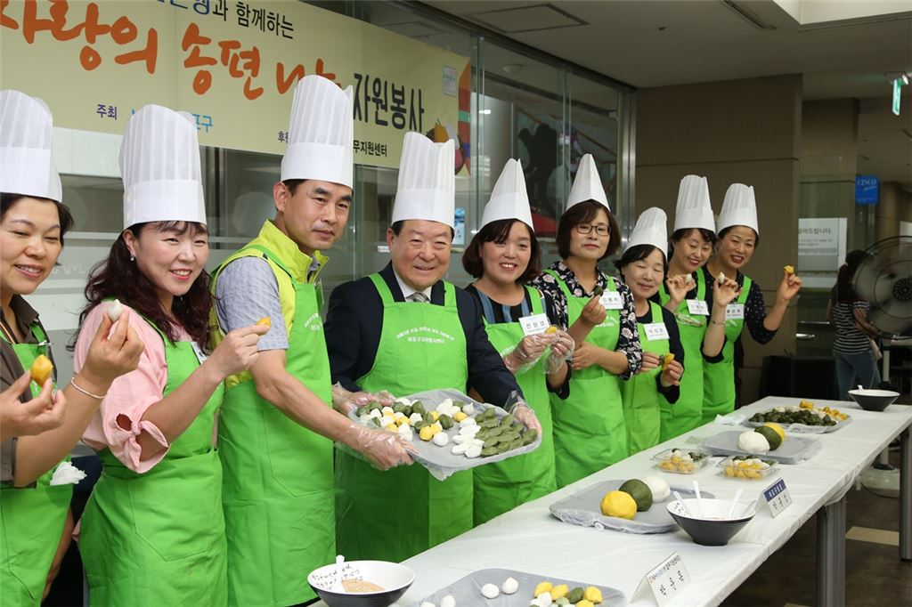 [아시아경제 박종일 기자] 박홍섭 마포구청장은 26일 오후 구청 구내식당에서 열린 'NH농협은행과 함께하는 한가위맞이 사랑의 송편나눔' 행사에 참석해 송편을 만들었다. NH농협은행의 사회공헌활동 일환으로 개최된 행사는 다문화가족과 자원봉사자들이 송편을 빚어 포장해 지역의 독거노인 등 취약계층에게 전달했다. 박종일 기자 dream@asiae.co.kr<ⓒ세계를 보는 창 경제를 보는 눈, 아시아경제(www.asiae.co.kr) 무단전재 배포금지>