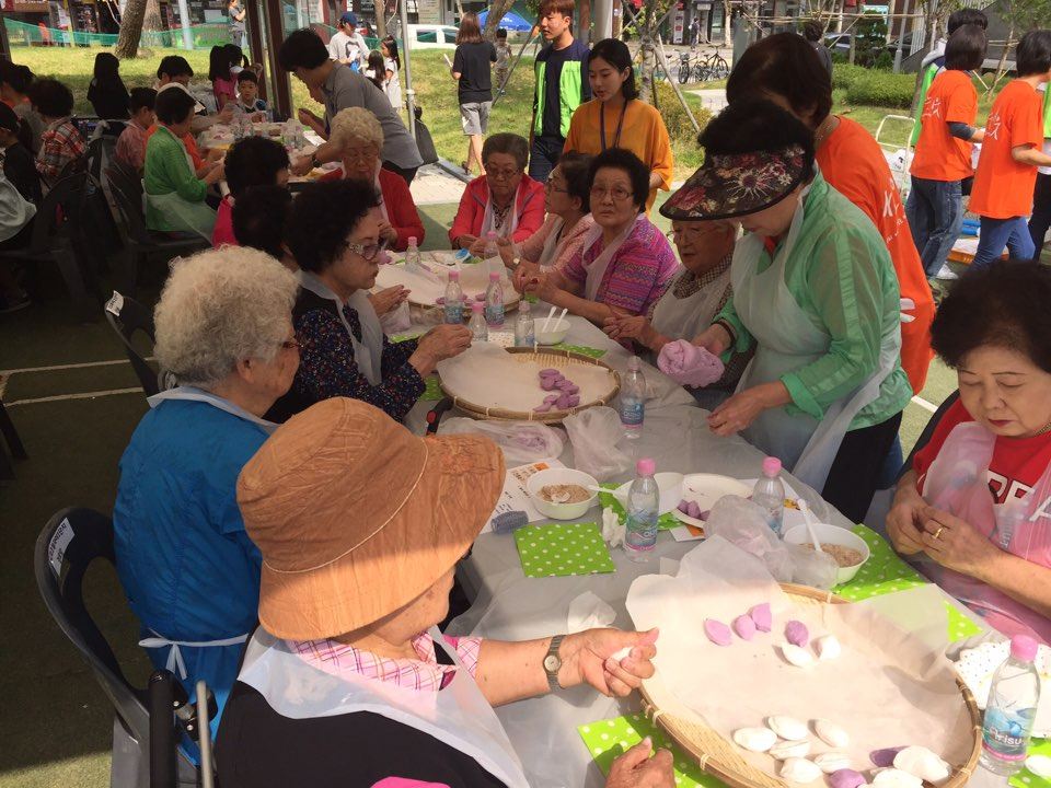 [아시아경제 박종일 기자] 서대문구 남가좌1동주민센터가 지난 주말인 23일 정오부터 오후 4시까지 가재울어린이공원에서 ‘나눔이웃’이 주관하는 추석맞이 한가위 송편 축제를 열었다.나눔이웃인 주민센터와 서대문종합사회복지관의 4개 동아리 회원들이 올해 5월부터 정기적으로 모여 나눔문화 확산을 위해 필요한 마을 활동에 대한 토의를 하며 이번 축제를 기획했다.이날 ▲700인분 송편 빚기 ▲전래놀이(가족윷놀이, 전통가면만들기, 떡메치기, 투호던지기) ▲체험부스(압화부채만들기, 페이스페인팅) ▲떡 썰기와 송편 뽐내기 이벤트 등이 다채롭게 진행돼 주민들의 큰 호응을 얻었다.자녀, 부모님과 함께 3대가 참여한 김민주 씨는 “남녀노소 모두 참여하고 어울릴 수 있어 더욱 의미 있었으며 우리 고유 명절인 추석에 잘 어울리는 축제였다”고 밝혔다.