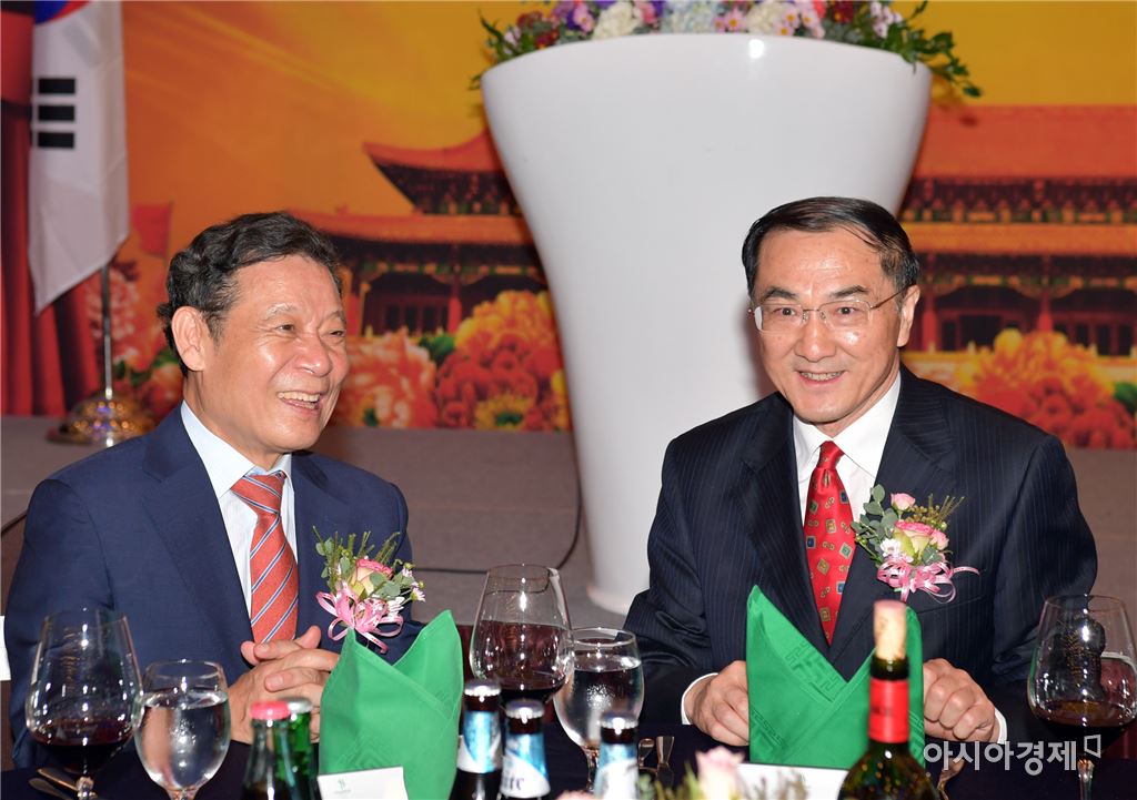 [아시아경제 노해섭 기자] 윤장현 광주광역시장(왼쪽)이 26일 오후 서구 홀리데이인 광주호텔 3층 다이너스티홀에서 열린 '중화인민공화국 건국 68주년 경축 리셉션'에 참석해 쑨시엔위 주 광주 중국총영사와 대화를 나누고 있다.