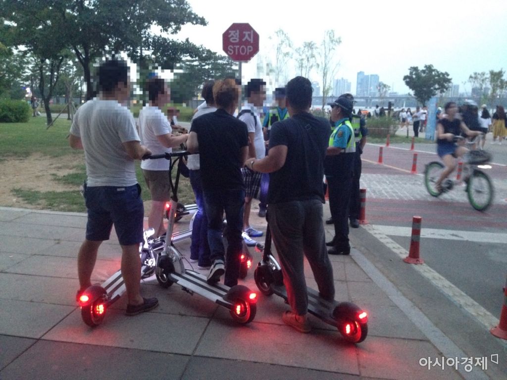▲ 20일 오후 서울 여의도 한강공원 전동킥보드 단속 현장