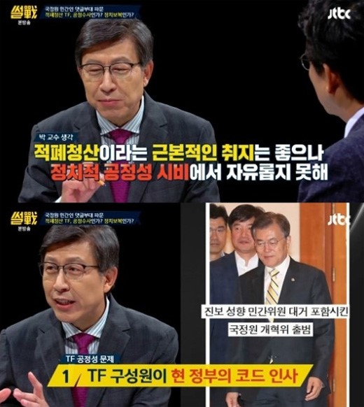 박형준 교수가 총선 지원 의혹에 쌓인 가운데 '썰전'에서 김대중-노무현 정부 당시 정치개입 사례도 조사해야 한다고 발언한 것이 재조명되고 있다. 28일 더불어민주당 적폐청산위원회는 국회에서 긴급 간담회를 열고 이명박 정부 시절 청와대나 국정원 등에서 생산한 것으로 추정되는 다수의 문건을 공개했다.해당 문건에는 청와대에서 전출된 11명에 대해 직간접적인 지원을 호소하는 내용이 담겨있었으며, 정진석 전 정무수석을 비롯해 박형준 전 시민사회특보 등의 이름이 포함돼 있었다.지난달 10일 방송된 '썰전'에서 박형준 교수는 국정원 적폐청산TF에 대해 "셀프 조사다. 그곳은 5년마다 정치 바람을 심하게 타는 곳이다. 새 정부가 들어서면 새 정부 입맛에 맞게 조사할 게 아닌가. 김대중-노무현 정부 때 정치개입이 없었던 것처럼 이명박-박근혜 정권만 조사하면 안 된다"고 강조했다.이어, "김대중 정부 때 세무조사를 앞두고 23개 언론사 사주 도청 사건이 있었고 노무현 정권 때도 야당 정치인 사찰이 있었다. 그런 문제들에 대해서도 함께 조사한다면 OK다. 그럼 과거사 청산을 한다는 차원이 되겠지만, 이명박근혜 13개 적폐 리스트 그것만 밝혀서는 안 된다"고 말했다.[사진제공='썰전' 캡쳐]