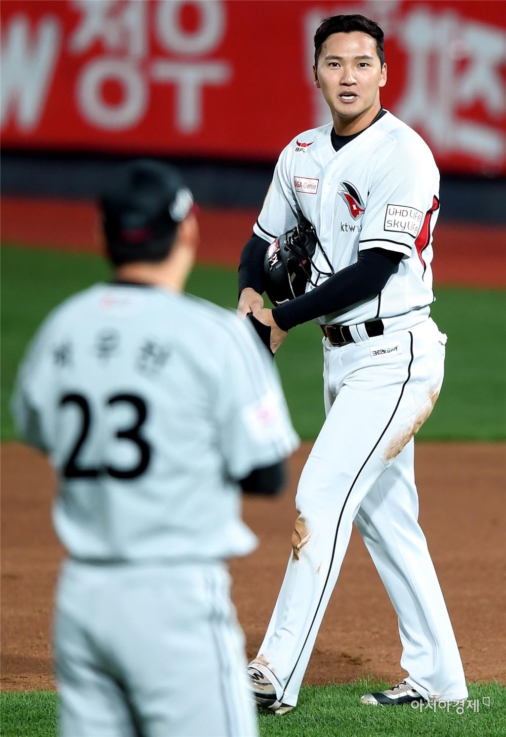 [수원=아시아경제 김현민 기자]프로야구 두산 베어스와 kt 위즈의 2017 KBO리그 경기가 28일 수원 kt위즈파크에서 열렸다. 5회말 무사 2루에서 kt 김동욱이 1타점 2루타를 치고 비디오 판독을 기다리는 중 LG 차우찬과 대화하고 있다. 김현민 기자 kimhyun81@asiae.co.kr<ⓒ세계를 보는 창 경제를 보는 눈, 아시아경제(www.asiae.co.kr) 무단전재 배포금지>