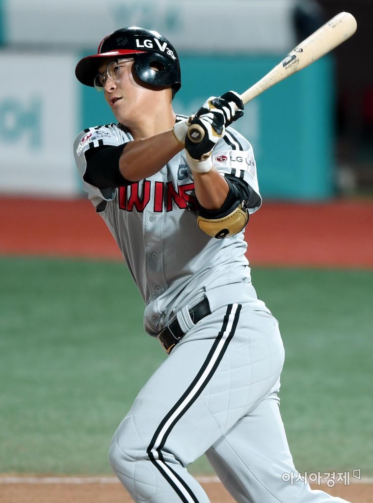 [수원=아시아경제 김현민 기자]프로야구 두산 베어스와 kt 위즈의 2017 KBO리그 경기가 28일 수원 kt위즈파크에서 열렸다. 6회초 1사에서 LG 문선재가 좌익수 옆 2루타를 치고 있다. 김현민 기자 kimhyun81@asiae.co.kr<ⓒ세계를 보는 창 경제를 보는 눈, 아시아경제(www.asiae.co.kr) 무단전재 배포금지>