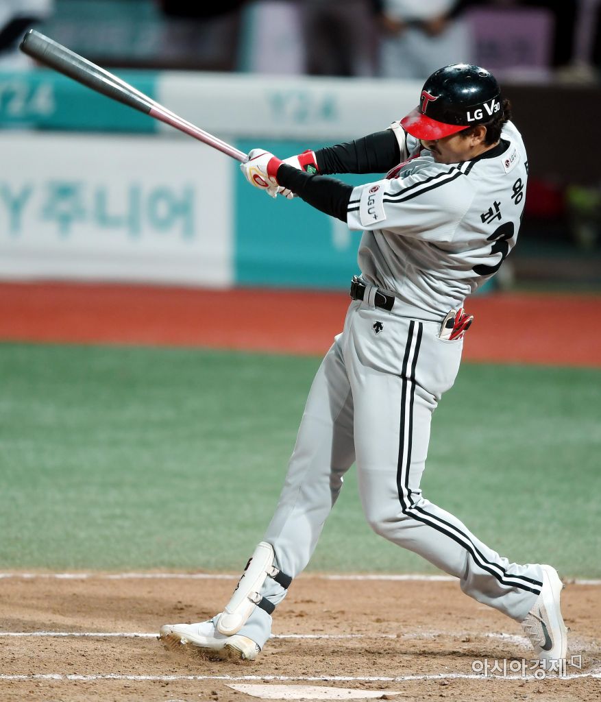 [수원=아시아경제 김현민 기자]프로야구 두산 베어스와 kt 위즈의 2017 KBO리그 경기가 28일 수원 kt위즈파크에서 열렸다. 6회초 1사 1,2에서 LG 박용택이 추가 1타점 적시타를 치고 있다. 김현민 기자 kimhyun81@asiae.co.kr<ⓒ세계를 보는 창 경제를 보는 눈, 아시아경제(www.asiae.co.kr) 무단전재 배포금지>