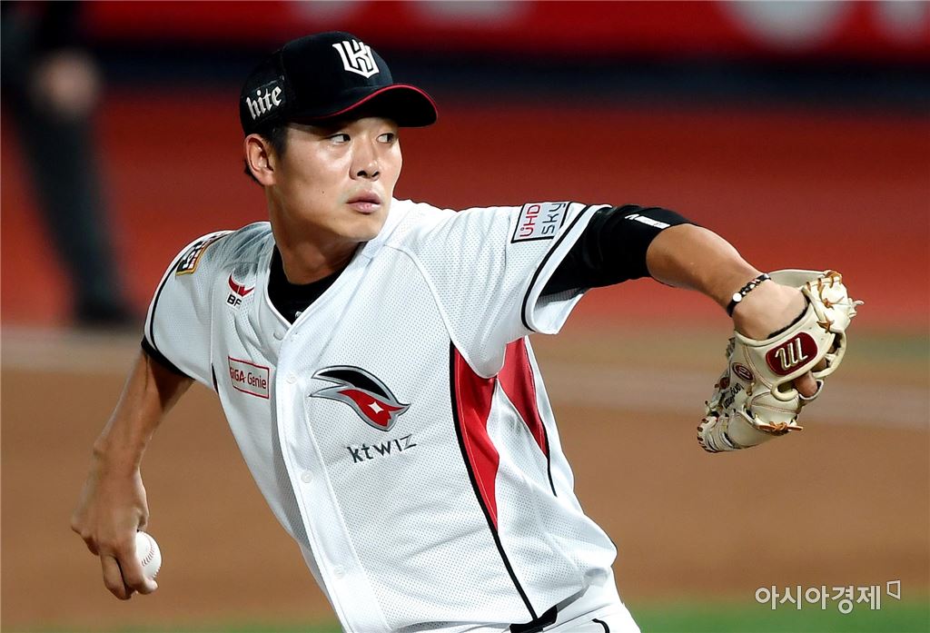 [수원=아시아경제 김현민 기자]프로야구 두산 베어스와 kt 위즈의 2017 KBO리그 경기가 28일 수원 kt위즈파크에서 열렸다. 7회초 kt 구원투수 장강산이 역투하고 있다. 김현민 기자 kimhyun81@asiae.co.kr<ⓒ세계를 보는 창 경제를 보는 눈, 아시아경제(www.asiae.co.kr) 무단전재 배포금지>