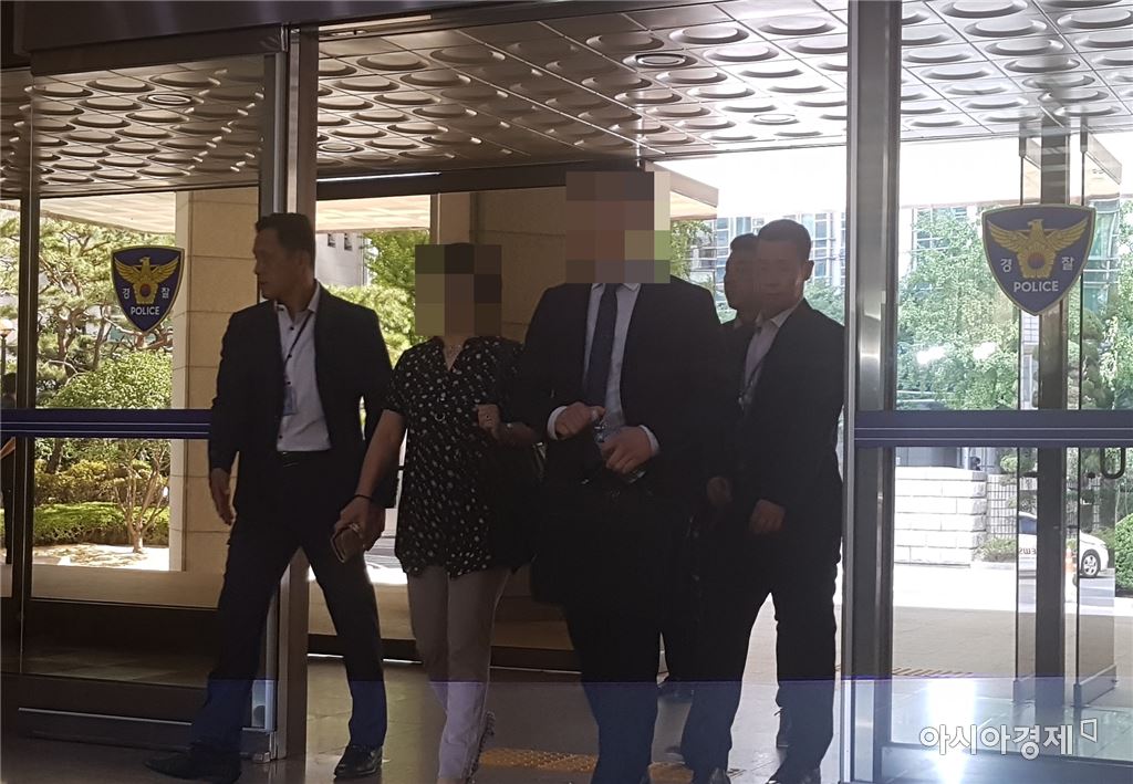 29일 오후 2시 서울 종로구 내자동 서울지방경찰청에 고(故) 박용철씨의 유족인 박씨의 부인과 차남이 출석하고 있다.