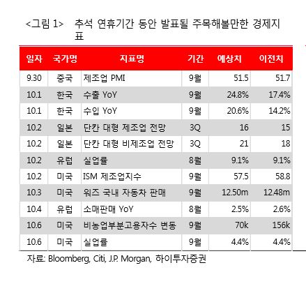 [아시아경제 이창환 기자] 10일 간의 최장기 추석 연휴가 시작됐다. 긴 연휴 기간 동안 우리나라는 쉬지만 미국과 영국 등 대부분의 나라는 쉬지 않는다. 투자자라면 연휴 기간에도 다른 나라에서 발표될 경제지표와 이벤트에 주목할 필요가 있다. 하이투자증권, 하나금융투자 등 금융투자업계에 따르면 10월 추석 연휴에 주목해 볼 만한 이벤트로는 연준위원들의 연설과 월초부터 시작될 연준의 자산축소(월 100억 달러), 미국의 내년 예산안 합의, 9월 ECB 의사록, 스페인 카탈루냐 분리독립 선거 등이 있다. 관심을 가져야 할 지표로 미국은 9월 ISM 제조업, 9월 자동차 판매, 9월 고용지표, 유럽은 8월 실업률, 8월 소매판매, 중국은 9월 제조업 PMI 등이 있다. 진용재 하이투자증권 이코노미스트는 9월 미국 ISM 제조업 지수와 국내 자동차 판매는 이전과 비슷한 수준에서 머물 것으로 예상했다. 9월 미국 공급관리자협회(ISM) 제조업 예상치는 57.5로 이전치(58.8)를 소폭 하회하고 있고 국내 자동차 판매 예상치는 1250만대로 이전(1248만대)을 소폭 상회하고 있다. 미국 ISM 제조업 지표는 최근 5년래 최고치를 기록하고 있어 이에 대한 피로감으로 소폭 조정은 불가피한 상황이었기에 우려할만한 것은 아니라고 판단했다. 미국 고용지표도 관심이 크다. 9월 비농업부분 고용자수 예상치는 이전치(15.6만명)의 절반 수준인 7만명에 그치고 있다. 하지만 이에 대해 크게 우려할 것은 없다고 보는데 그 이유는 허리케인에 의한 일시적인 부진에 불과하기 때문이다. 즉, 시장에서 예상하고 있는 부진이라 시장에 큰 충격은 부재할 전망이다. 과거 허리케인 카트리나, 샌디 때에도 비농업 고용자수는 일시적으로 감소됐다가 2~3개월 후 재차 회복됐다.미국 연준 옐런 의장의 연설은 10월 5일 새벽 4시 15분에 예정돼 있다. 이번 연설은 세인트 루이스 연은의 연래행사인 은행연합회 포럼의 오프닝 연설이다. 따라서 은행 규제에 관련한 부문이 주요 멘트가 될 것으로 예상된다고 김두언 하나금융투자 이코노미스트는 밝혔다. 옐런 의장은 은행의 규제 철폐에 대해 반대 입장을 보이고 있다. 지난 8월 잭슨홀 미팅에서부터 트럼프 대통령의 강력한 은행규제 철폐에 대해 부정적인 견해를 피력하고 있다. 내년 2월 종료하는 연준 의장직의 연임 가능성도 낮다는 점 에서 이전 스탠스를 고수할 개연성이 크다. 따라서 시장 영향은 중립적일 전망이다. 김 이코노미스는 개인적으로 보다 주목하는 부문은 인플레에 관한 멘트라고 했다. 최근 옐런 의장은 인플레이션 모델 설정에 오류가 있을 가능성을 시사했다. 고용과 물가를 통해 기대 인플레이션을 가늠하는 필립스 곡선을 완전히 부정하는 것은 아니지만 분명하지 않은 부문에서 미국의 인플레를 미약하게 만들고 있다고 했다. 실제로 연준의 분석에 따르면, 과거 08년 위기 이후 미국의 인플레이션을 낮추던 유휴노동력(Slack)은 상당부문 정상화 됐음에도 불구하고 알 수 없는 기타 요인들이 미국의 물가를 낮추고 있다. 따라서 인플레이션을 둘러싼 일련의 불확실성 속 에서 연준의 통화정상화가 어떻게 구현돼야 하는 지 등에 관한 멘트를 주시해야 한다. 선제적인 금리인상을 다시 한번 피력한다면, 미 달러화 강세 유인으로 작용할 공산이 있다는 시각이다. 미국 9월 고용지표는 10월6일 밤 9시30분에 발표된다. 주목할 부문은 허리케인 여파의 회복 여부다. 특히 지난달 급감했던 여가 부문을 주시할 필요가 있다. 장기 실업률과 공식 실업률간의 차이로 판별하는 유휴노동력과 임금도 관심사다. 만약 미국 고용이 허리케인 여파에서 완전히 벗어나지 못해 둔화를 보인다면 연내 연준의 금리인상 기대는 경감될 소지가 있다. 참고로 과거 허리케인 등 자연재해 여파는 평균 한 달 정도의 단기 여파에 그쳤었다.
