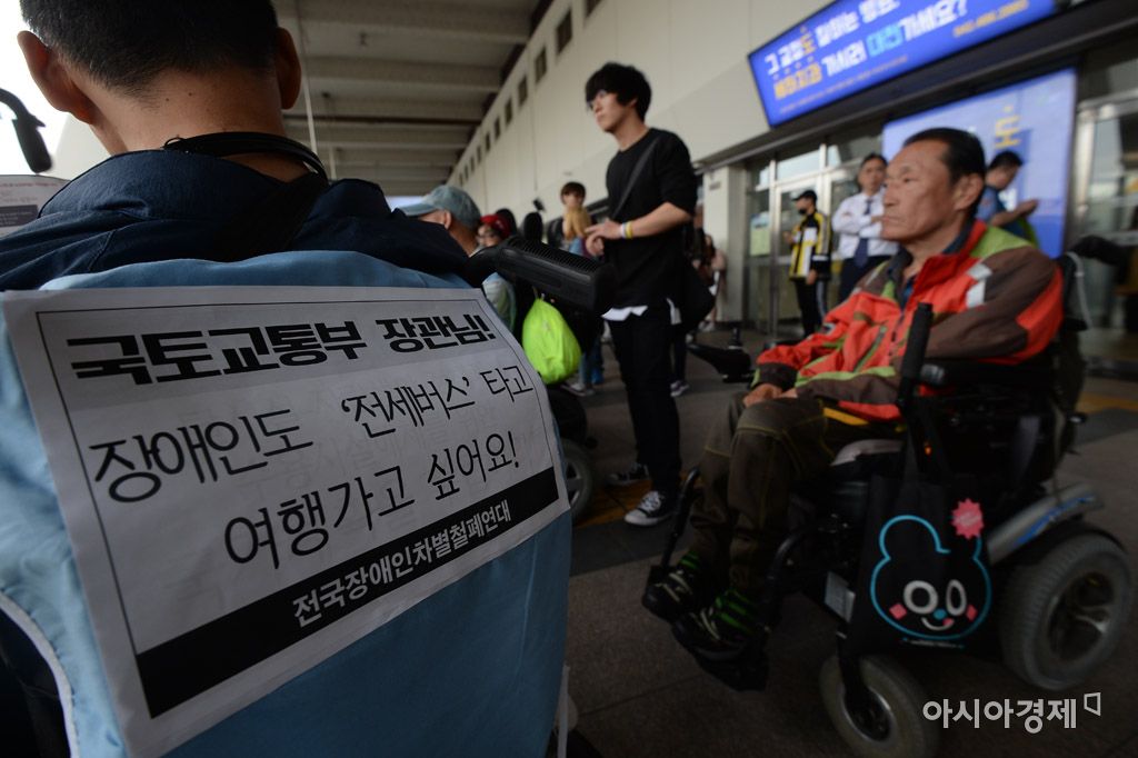 [포토]고속버스 앞 장애인 이동권 보장 촉구