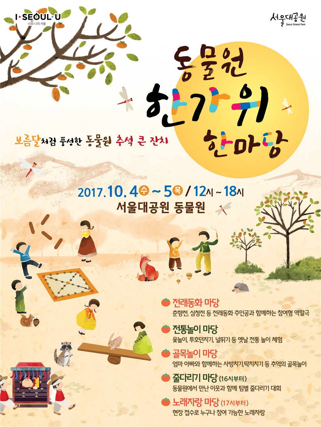 [아시아경제 금보령 기자] 서울대공원은 4~5일에 전통놀이체험 등 다양한 행사를 진행한다고 2일 밝혔다.동물원 입구에서는 낮 12시부터 오후 6시까지 '전래동화 마당'이 펼쳐진다. 춘향전 속이 춘향이, 심청전 속의 심봉사 등 전래동화 속 주인공들을 만나볼 수 있다. 행사장 곳곳에서는 전통 혼례복도 대여해준다.동물원 정문 광장에서는 여러 가지 행사가 어우러진다. 낮 12시부터 오후 6시까지는 널뛰기, 대형 윷놀이, 투호, 굴렁쇠, 제기차기 등을 즐길 수 있는 '전통놀이 마당'이 진행된다. 같은 시간 사방치기, 술래잡기, 딱지치기 등을 할 수 있는 '골목놀이 마당'도 함께 할 수 있다.오후 4시부터 5시까지는 '줄다리기 마당'이 열린다. 현장 접수를 통해 15명 내외의 한 팀을 만들어 줄다리기 시합을 펼친다. 우승팀에게는 기념화분을 증정한다.이어 오후 5~6시에는 '노래자랑 마당'에 누구나 참가할 수 있다. 하루 10명 현장접수로 진행하며 참가자들에게는 동물인형을 선물로 준다. 서울대공원 안에는 추석 보름달이 잘 보이는 명소들이 있다. 호수 둘레길, 분수대 광장, 동물원 정문광장, 미리내 다리, 현대미술 관 등 여러 곳이다. 특히 4일에는 동물원 정문광장에서 소원지를 매달 수 있는 행사도 있다. 한편 22일까지 곤충관 입구 특별 전시장에서는 살아 있는 나비 1000마리를 만날 수 있다. 나비는 서울대공원에서 자체 증식한 500마리와, 한국곤충연구기관협회에서 기증 받은 500마리로 구성돼 있다.멸종위기 나비를 보전하기 위한 설명도 주말과 공휴일 오후 1시와 3시에 들을 수 있다. 송천헌 서울대공원장은 "이번 추석 연휴엔 온 가족이 서울대공원에서 풍성한 한가위 행사도 즐기고 자연 속에서 힐링과 행복을 나누길 바란다"고 말했다.금보령 기자 gold@asiae.co.kr<ⓒ세계를 보는 창 경제를 보는 눈, 아시아경제(www.asiae.co.kr) 무단전재 배포금지>