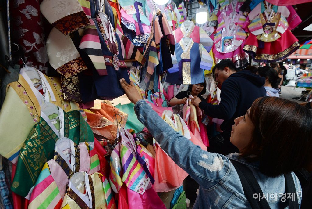 [아시아경제 문호남 기자] 추석을 하루 앞둔 3일 서울 중구 남대문시장을 찾은 시민들이 한복을 고르고 있다.문호남 기자 munonam@asiae.co.kr<ⓒ세계를 보는 창 경제를 보는 눈, 아시아경제(www.asiae.co.kr) 무단전재 배포금지>