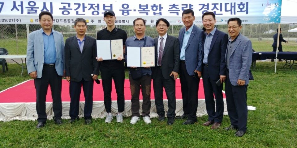 '2017 서울시 공간정보 융·복합 측량 경진대회'에서 최첨단 기술의 과제를 완벽하게 수행함으로써 우수상을 수상한 성북구 대표들