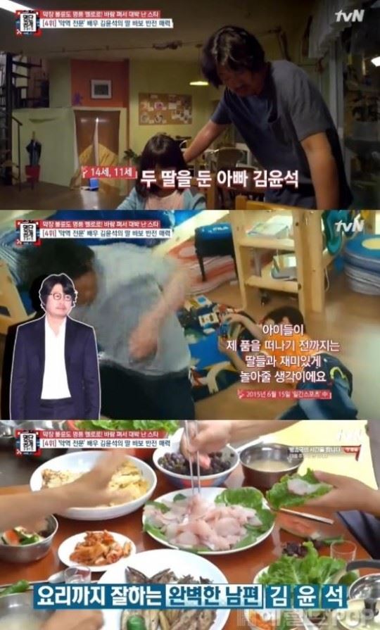 영화 '남한산성'이 화제를 모으고 있는 가운데, 주연 김윤석의 반전 이미지가 재조명됐다.과거 방송된 tvN '명단공개'에서는 '막장 불륜도 명품 멜로로! 바람 펴서 대박 난 스타' 순위가 공개됐다.당시 방송에서 김윤석은 4위에 이름을 올렸다. 그는 거친 이미지와 달리 아내와 딸 밖에 모르는 가정적인 스타일인 것으로 전해졌다.김윤석은 집에서도 요리를 즐기고 작품이 끝나면 꼭 두 딸을 데리고 여행을 떠난다고. 후배 연기자는 "윤석이 형이 요리를 정말 잘한다"며 그를 칭찬했다. 이에 김윤석은 "아이들이 제 품을 떠나기 전까지 같이 재밌게 놀아주고 싶다. 가족과 함께할 수 있는 것들을 항상 찾으려고 한다"고 말해 훈훈함을 안겼다. 한편 김윤석 주연의 '남한산성'은 1636년 인조 14년 병자호란, 나아갈 곳도 물러설 곳도 없는 고립무원의 남한산성 속 조선의 운명이 걸린 가장 치열한 47일 간의 이야기를 그린 영화다.미디어이슈팀 기자 <ⓒ세계를 보는 창 경제를 보는 눈, 아시아경제(www.asiae.co.kr) 무단전재 배포금지>