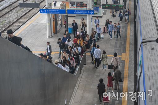 [아시아경제 강진형 기자]추석 연휴 막바지인 8일 오전 서울역에서 귀경객들이 기차에 내려 이동하고 있다.강진형 기자 aymsdream@asiae.co.kr<ⓒ세계를 보는 창 경제를 보는 눈, 아시아경제(www.asiae.co.kr) 무단전재 배포금지>