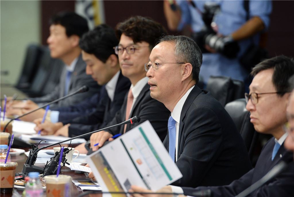 백운규 산업통상자원부 장관(오른쪽 두번째)이 10일 오후 서울 종로구 무역보험공사 대회의실에서 열린 '원전수출전략협의회'에서 정부의 원전수출과 관련한 입장을 설명하고 있다.