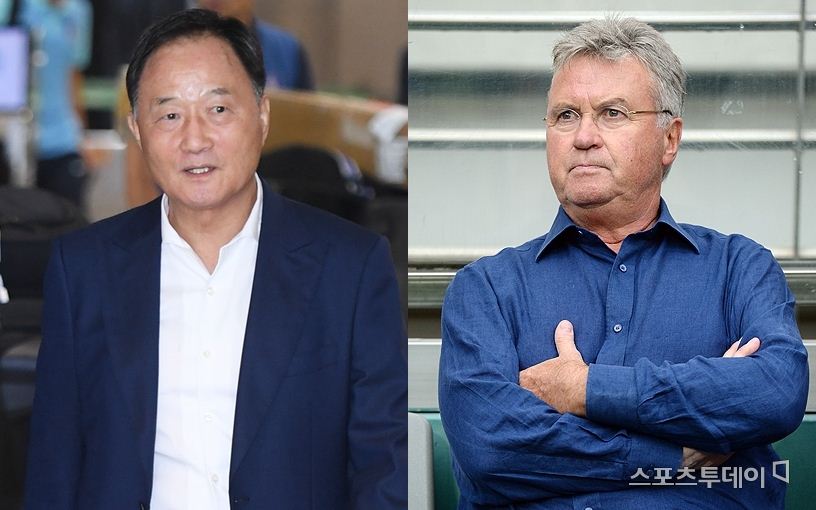 지난 8일 ‘축구를 사랑하는 국민’ 회원들은 서울 종로구 대한축구협회 사무실 앞에서 김 부회장의 사퇴와 히딩크 전 감독의 영입을 촉구하는 집회를 열었다.이들은 “축협적폐세력 몰아내고 히동구(히딩크) 감독 모시자”라고 적힌 현수막을 걸고 “히딩크 사랑해요” 등의 문구와 함께 촛불 시위를 진행했다.반면 김 부회장은 히딩크 전 감독과 악연을 맺어왔다.김 부회장은 올림픽 축구대표팀 감독이던 2003년 2월 네덜란드 전지훈련 후 귀국한 자리에서 당시 축구협회의 기술자문으로 있던 히딩크 전 감독을 겨냥해 “돈만 아는 인간이다”라고 비난했다.당시 김 부회장은 히딩크 전 감독을 “그 xx”라며 욕설을 섞어 부르기도 했다.온라인이슈팀 issue@asiae.co.kr<ⓒ세계를 보는 창 경제를 보는 눈, 아시아경제(www.asiae.co.kr) 무단전재 배포금지>