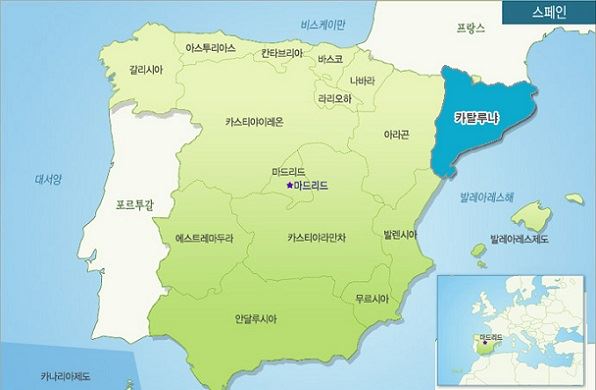 스페인의 자치지방 모습. 카탈루냐는 과거 중세시대 아라곤, 발렌시아, 발레아레스 등 지역들과 아라곤 왕국이란 하나의 나라를 이뤘었다.(사진=코트라)