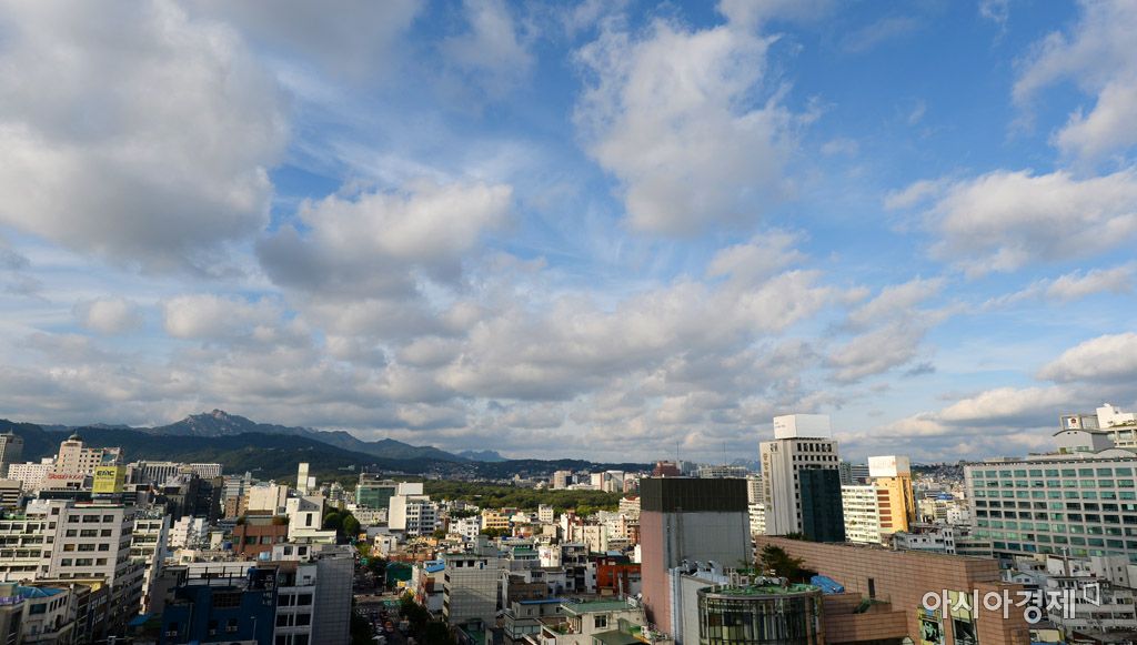 [아시아경제 문호남 기자] 비가 그친 11일 서울 충무로 한 사옥에서 바라본 하늘이 구름이 많고 맑은 모습을 보이고 있다. 기상청은 북서쪽에서 찬 공기가 유입되면서 기온이 뚝 떨어질 것으로 예보했다. 문호남 기자 munonam@asiae.co.kr<ⓒ세계를 보는 창 경제를 보는 눈, 아시아경제(www.asiae.co.kr) 무단전재 배포금지>