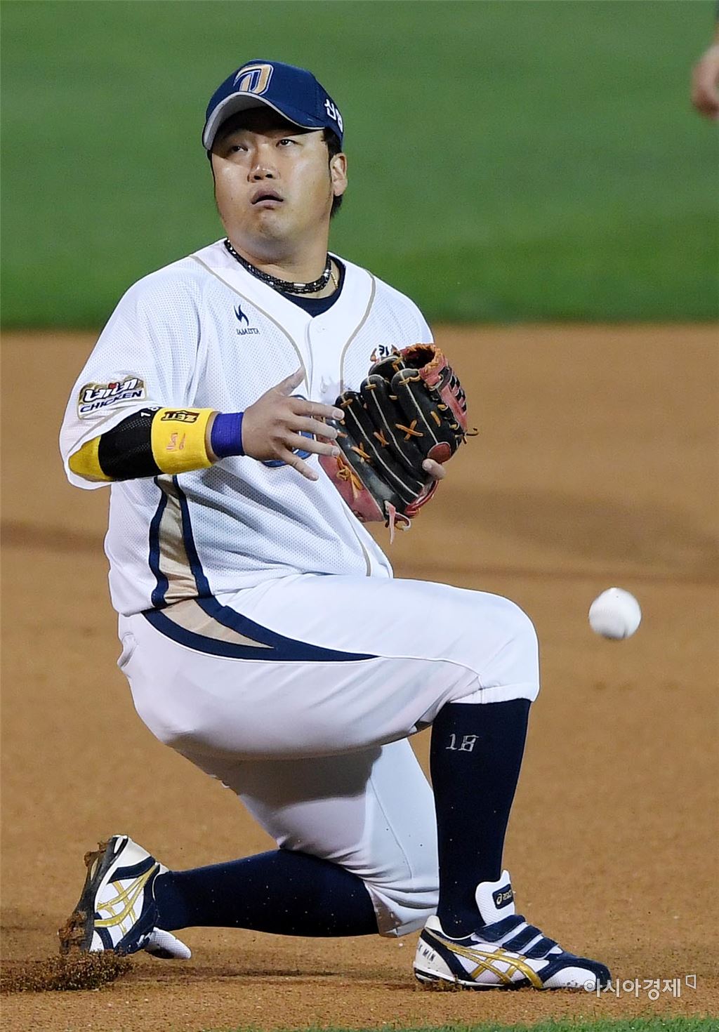 [창원=아시아경제 김현민 기자]프로야구 롯데 자이언츠와 NC 다이노스이 2017 KBO리그 준플레이오프 3차전이 11일 창원 마산야구장에서 열렸다. 1회초 NC 3루수 박석민이 롯데 선두타자 전준우의 뜬공을 놓치고 있다. 김현민 기자 kimhyun81@asiae.co.kr<ⓒ세계를 보는 창 경제를 보는 눈, 아시아경제(www.asiae.co.kr) 무단전재 배포금지>
