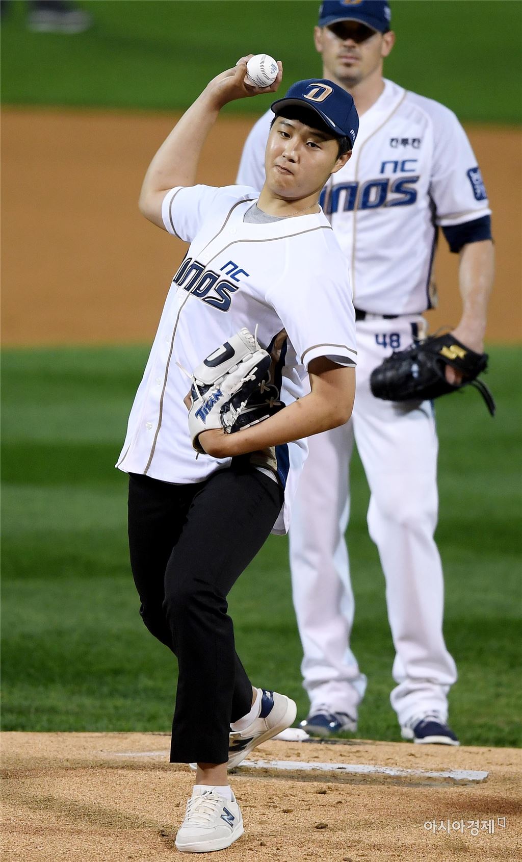 [창원=아시아경제 김현민 기자]프로야구 롯데 자이언츠와 NC 다이노스이 2017 KBO리그 준플레이오프 3차전이 11일 창원 마산야구장에서 열렸다. 마산 용마고 투수 노시훈이 시구하고 있다. 김현민 기자 kimhyun81@asiae.co.kr<ⓒ세계를 보는 창 경제를 보는 눈, 아시아경제(www.asiae.co.kr) 무단전재 배포금지>