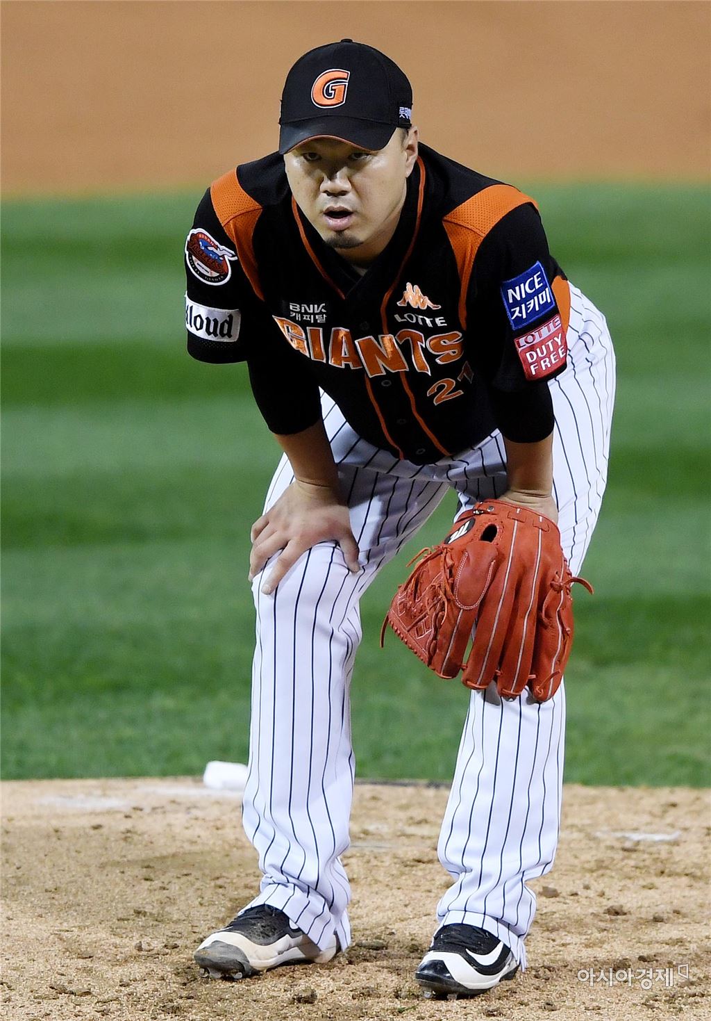[창원=아시아경제 김현민 기자]프로야구 롯데 자이언츠와 NC 다이노스이 2017 KBO리그 준플레이오프 3차전이 11일 창원 마산야구장에서 열렸다. 롯데 선발 송승준이 1회말 2사에서 NC 나성범에게 볼넷을 허용한 뒤 아쉬워하고 있다. 김현민 기자 kimhyun81@asiae.co.kr<ⓒ세계를 보는 창 경제를 보는 눈, 아시아경제(www.asiae.co.kr) 무단전재 배포금지>