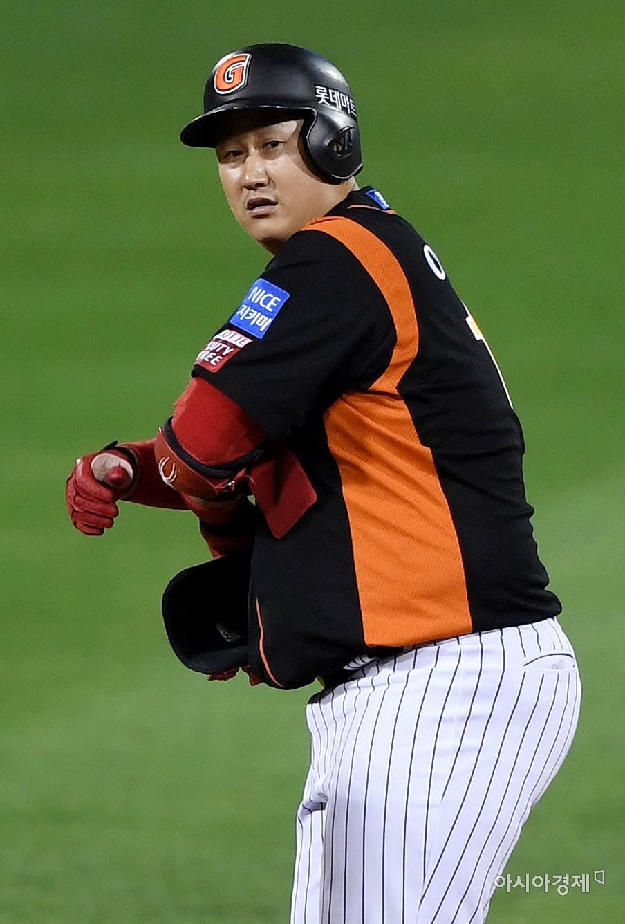 [창원=아시아경제 김현민 기자]프로야구 롯데 자이언츠와 NC 다이노스이 2017 KBO리그 준플레이오프 3차전이 11일 창원 마산야구장에서 열렸다. 2회초 롯데 선두타자 이대호가 우측 담장을 맞추는 2루타를 치고 출루하고 있다. 김현민 기자 kimhyun81@asiae.co.kr<ⓒ세계를 보는 창 경제를 보는 눈, 아시아경제(www.asiae.co.kr) 무단전재 배포금지>
