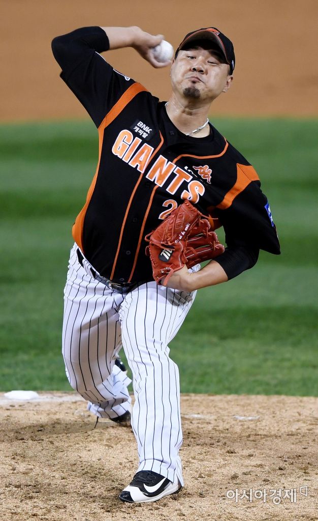 [창원=아시아경제 김현민 기자]프로야구 롯데 자이언츠와 NC 다이노스이 2017 KBO리그 준플레이오프 3차전이 11일 창원 마산야구장에서 열렸다. 롯데 선발 송승준이 역투하고 있다. 김현민 기자 kimhyun81@asiae.co.kr<ⓒ세계를 보는 창 경제를 보는 눈, 아시아경제(www.asiae.co.kr) 무단전재 배포금지>