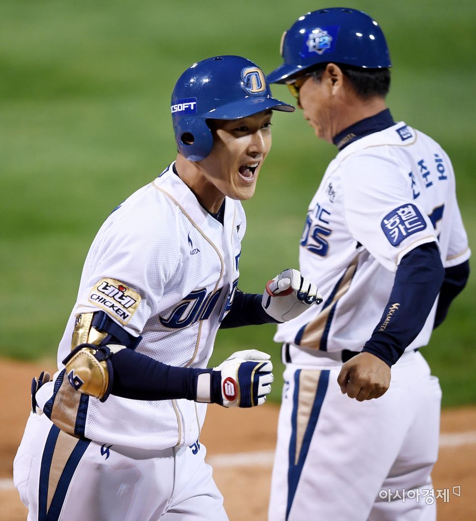 [창원=아시아경제 김현민 기자]프로야구 롯데 자이언츠와 NC 다이노스이 2017 KBO리그 준플레이오프 3차전이 11일 창원 마산야구장에서 열렸다. 3회말 2사 2루에서 NC 노진혁이 롯데 선발 송승준을 상대로 추가 투런 홈런을 치고 환호하고 있다. 김현민 기자 kimhyun81@asiae.co.kr<ⓒ세계를 보는 창 경제를 보는 눈, 아시아경제(www.asiae.co.kr) 무단전재 배포금지>