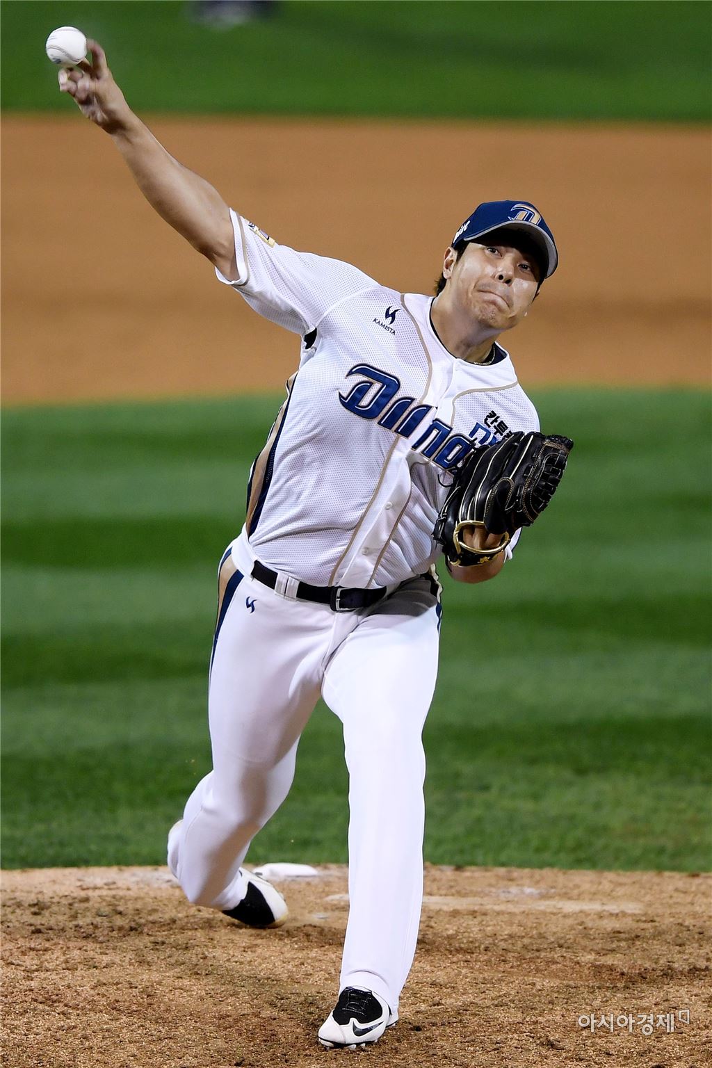 [창원=아시아경제 김현민 기자]프로야구 롯데 자이언츠와 NC 다이노스이 2017 KBO리그 준플레이오프 3차전이 11일 창원 마산야구장에서 열렸다. 5회초 NC 구원투수 김진성이 역투하고 있다. 김현민 기자 kimhyun81@asiae.co.kr<ⓒ세계를 보는 창 경제를 보는 눈, 아시아경제(www.asiae.co.kr) 무단전재 배포금지>