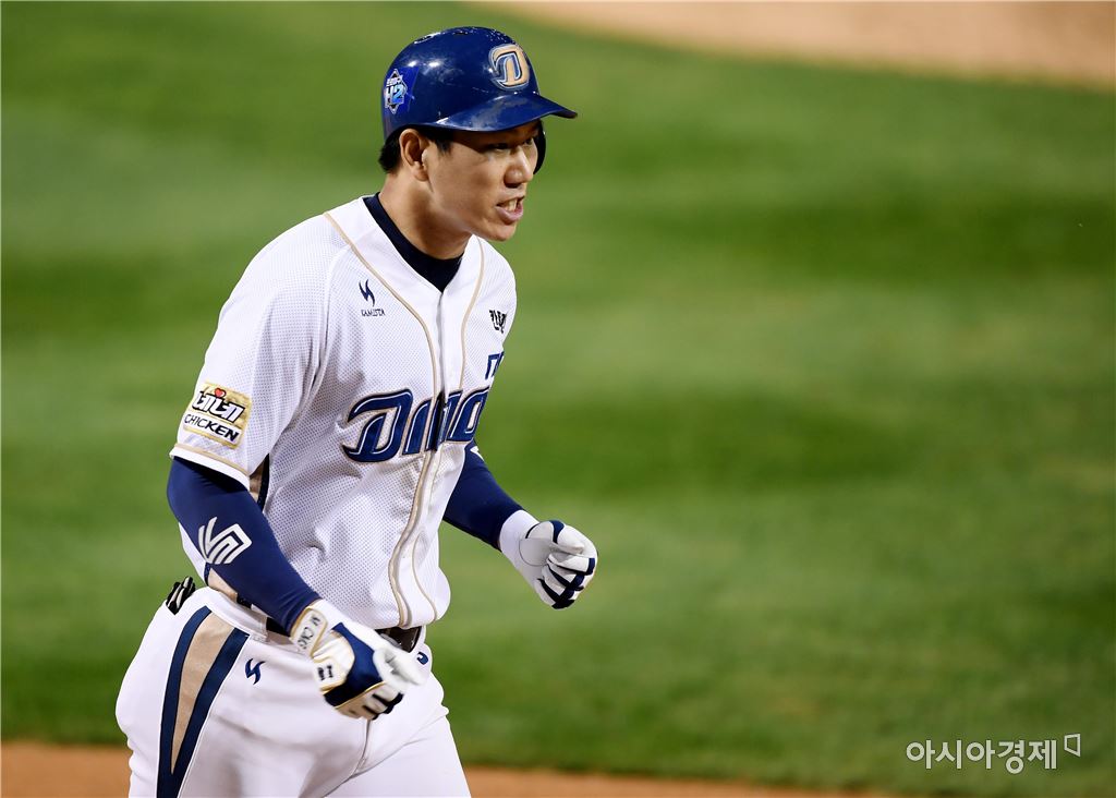 [창원=아시아경제 김현민 기자]프로야구 롯데 자이언츠와 NC 다이노스이 2017 KBO리그 준플레이오프 3차전이 11일 창원 마산야구장에서 열렸다. 6회말 1사에서 NC 모창민이 롯데 장시환을 상대로 추가 솔로 홈런을 치고 기뻐하고 있다. 김현민 기자 kimhyun81@asiae.co.kr<ⓒ세계를 보는 창 경제를 보는 눈, 아시아경제(www.asiae.co.kr) 무단전재 배포금지>