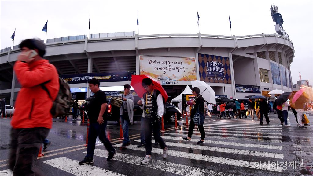 [포토]'가을야구 우천취소…아쉬운 발걸음'