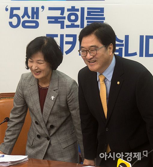 [아시아경제 윤동주 기자] 추미애 더불어민주당 대표와 우원식 원내대표가 13일 국회에서 열린 최고위원회의에 참석하고 있다.윤동주 기자 doso7@asiae.co.kr<ⓒ세계를 보는 창 경제를 보는 눈, 아시아경제(www.asiae.co.kr) 무단전재 배포금지>