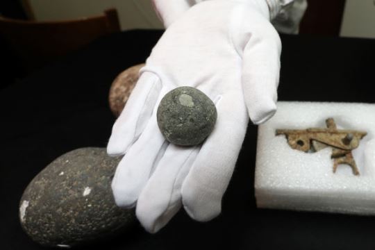12일 문화재청 국립해양문화재연구소에서 공개한 명량해협에서 발굴된 조란탄 모습(사진=연합뉴스)