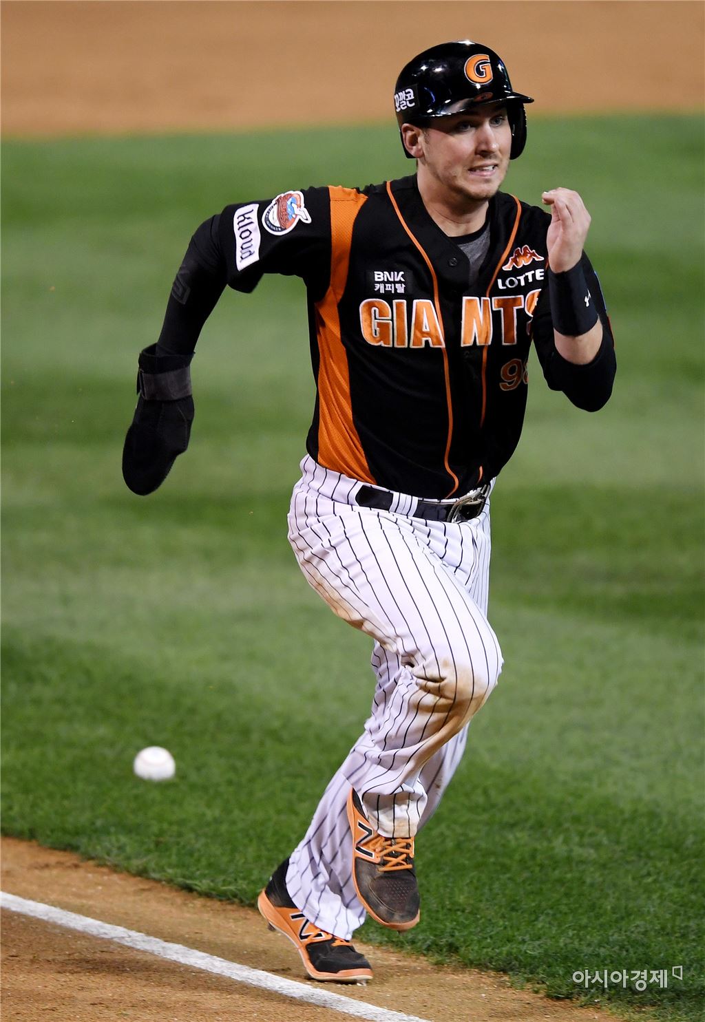 [창원=아시아경제 김현민 기자]프로야구 롯데 자이언츠와 NC 다이노스의 2017 KBO리그 준플레이오프 4차전이 13일 창원 마산야구장에서 열렸다. 5회초 2사 3루에서 롯데 신본기의 추가 1타점 행운의 내야 안타 때 3루주자 번즈가 득점하고 있다. 김현민 기자 kimhyun81@asiae.co.kr<ⓒ세계를 보는 창 경제를 보는 눈, 아시아경제(www.asiae.co.kr) 무단전재 배포금지>