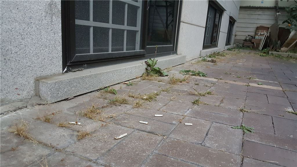 서울 동대문구 대학가 반지하 원룸 창문 앞에 담배 꽁초가 떨어져 있다.