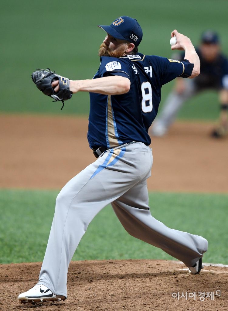 [사직= 아시아경제 박병희 기자] 프로야구 NC 다이노스의 에릭 해커가 2017 타이어뱅크 KBO리그 준플레이오프 최우수선수(MVP)에 뽑혔다. 해커는 15일 부산 사직야구장에서 열린 준플레이오프 5차전이 끝난 후 기자단 투표에서 전체 유효표 예순두 표 중 마흔다섯 표를 얻어 MVP에 선정됐다. 모창민이 열 표, 나성범이 네 표, 권희동이 두 표, 김태군이 한 표를 얻었다. 해커는 이번 준플레이오프에서 1차전과 5차전에 두 차례 선발 등판했다. 1차전에서는 7이닝 8피안타 2볼넷 6탈삼진 1실점으로 승리 발판을 마련했다. 벼랑 끝 승부로 열린 5차전에서는 6.1이닝 4피안타 2볼넷 8탈삼진 무실점으로 NC의 플레이오프행을 확정했다. 해커는 경기 후 인터뷰에서 "4차전 끝나고 공격과 수비에서 좋은 준비를 한 덕분에 5차전에서 좋은 경기 할 수 있었다"고 했다. 애초 12일로 예정됐던 준플레이오프 4차전이 비로 하루 순연됐지만 해커는 4차전에 등판하지 않고 원래 예정대로 5차전에 등판했다. 롯데 조시 린드블럼이 1차전 선발 후 4차전에 당겨 등판한 것과 다른 행보였다. 해커는 4차전 선발 등판에 대한 생각을 묻는 질문에 "큰 고민거리였다"고 답했다. 이어 "팀원들이 열심히 해줬기 때문에 여기까지 올 수 있었고 5차전에 던지는 것이 팀에도 기회를 주는 것이고 자신에게도 기회가 될 것이라고 생각했다"고 했다. 결과적으로 푹 쉰 덕분에 5차전에 잘 던질 수 있었다고 덧붙였다. NC는 플레이오프에서 두산을 만난다. 3년 연속 가을야구에서 상대하는데 2015년에는 플레이오프에서 지난해에는 한국시리즈에서 무릎을 꿇었다. 해커는 두산과 경기에서 편하게 해야 좋은 결과를 얻을 수 있을 것이라고 했다.박병희 기자 nut@asiae.co.kr<ⓒ세계를 보는 창 경제를 보는 눈, 아시아경제(www.asiae.co.kr) 무단전재 배포금지>