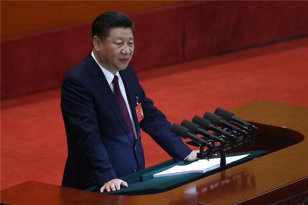 시진핑 중국 국가주석이 18일(현지시간) 베이징 인민대회당에서 개막한 제19차 당대회에 참석해 업무 보고를 하고 있다. [출처=EPA연합]