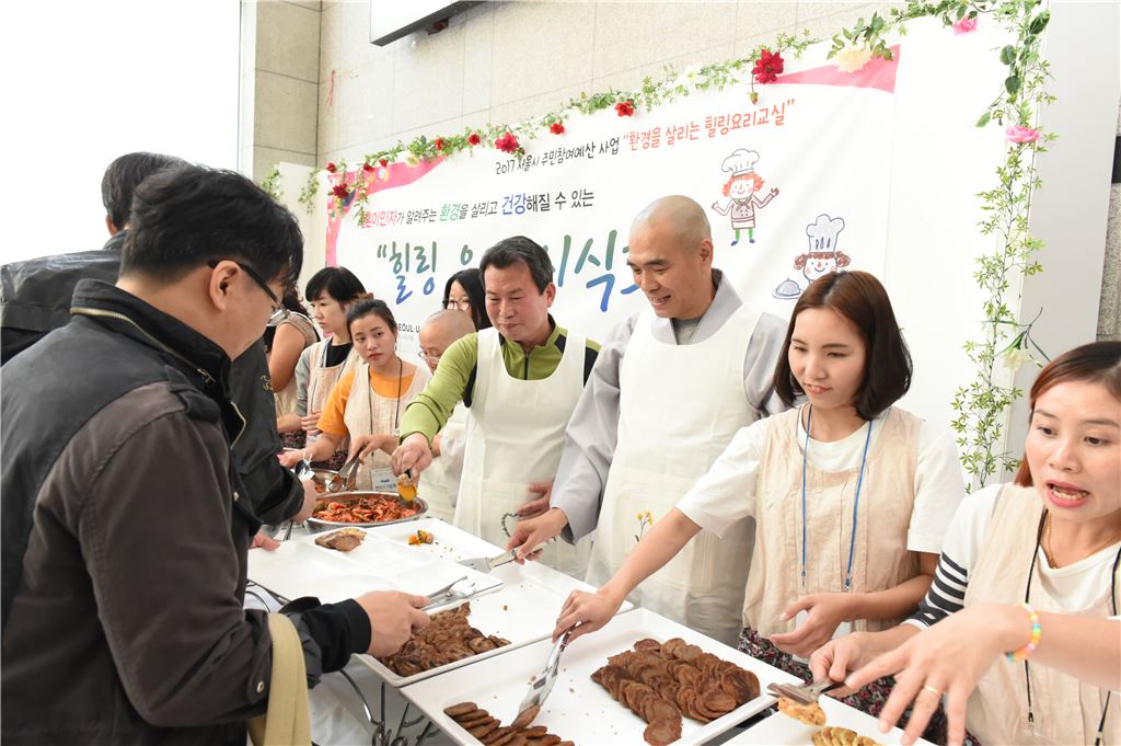 [아시아경제 박종일 기자] 나진구 중랑구청장이 21일 오후 건강한 가족을 위한 패밀리파티 ‘함께 놀자’ 행사에서 준비한 힐링 요리 시식회에 참석해 주민들에게 음식을 나눠주었다. 중랑구건강가정지원센터와 다문화가족지원센터가 공동으로 주최한 행사에서는 결혼이민자들이 직접 만든 사찰 요리를 함께 나누는 힐링 요리 시식회가 열렸다. 박종일 기자 dream@asiae.co.kr<ⓒ세계를 보는 창 경제를 보는 눈, 아시아경제(www.asiae.co.kr) 무단전재 배포금지>