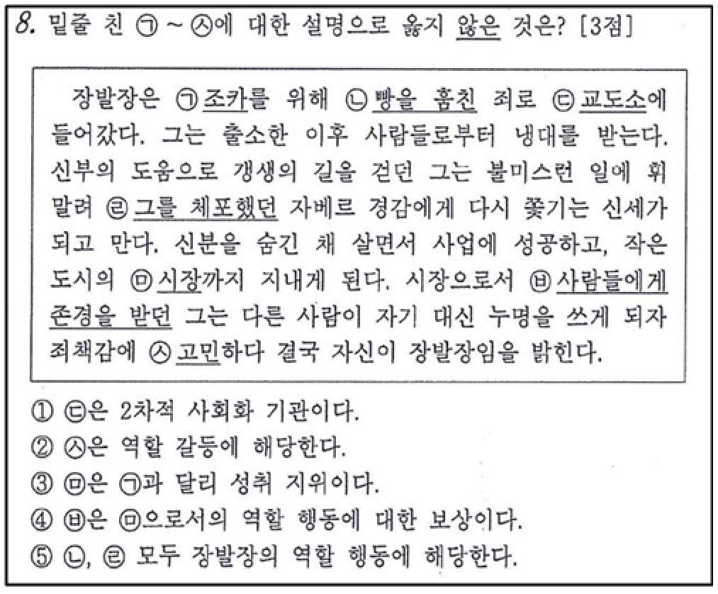 10월 전국연합학력평가 사회탐구 사회문화영역 8번 문제