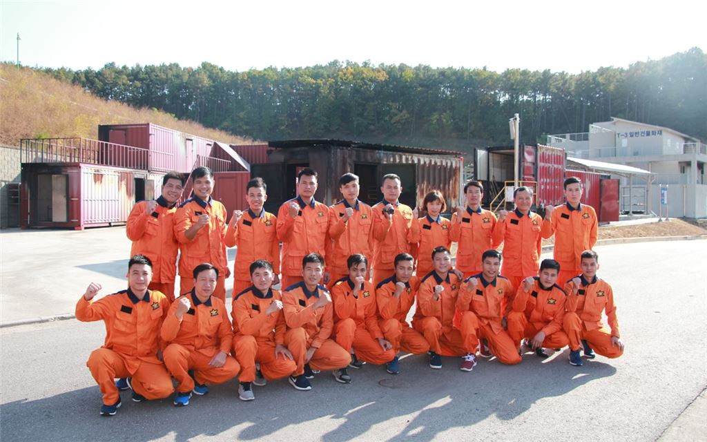 베트남 소방공무원들이 경기도소방학교에서 수업을 마친 뒤 기념사진을 찍고 있다.